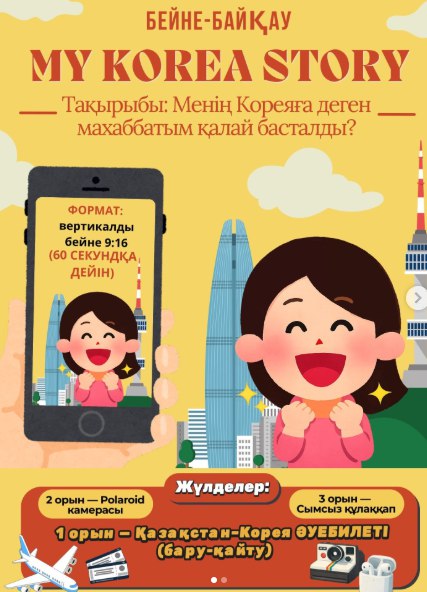 The Korean Cultural Center invites citizens of Kazakhstan to participate in a contest, sharing their story of how they got to know and fell in love with Korea in a video format.